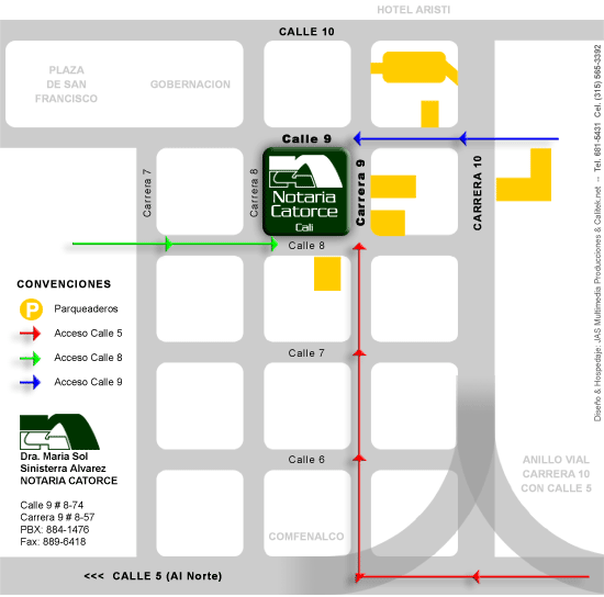 Mapa de Ubicación Geográfica derechos reservados ® notaria catorce cali 2005